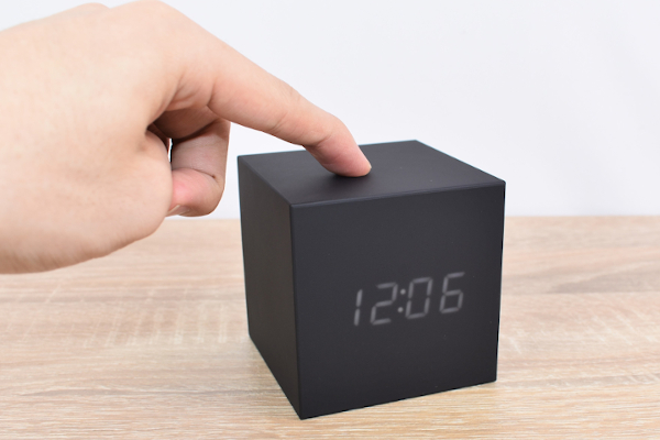 ●指を鳴らして操作する「MoMA カラーキューブクロック ブラック」(MoMA)