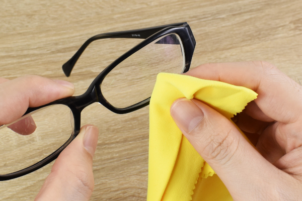 使い方は普通のメガネふきと同じように、レンズの両面を5~10回ずつふくだけでOKです。同じ場所を使わずに、布全体でレンズをふくのがポイント。上手に“親水性被膜”をレンズに広げられれば、ホコリや花粉の付着を防ぐこともできますよ。