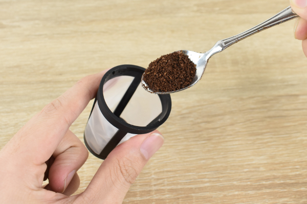 小さめのコーヒーフィルターにハンドルがついた同商品。サイズは約6.4(幅)×6.4(奥行き)×20cm(高さ)と片手で扱いやすい大きさです。フィルター部分がすっぽり収まるスティックホルダーも付属。さっそくコーヒーの粉末を用意して、1杯淹れてみましょう。