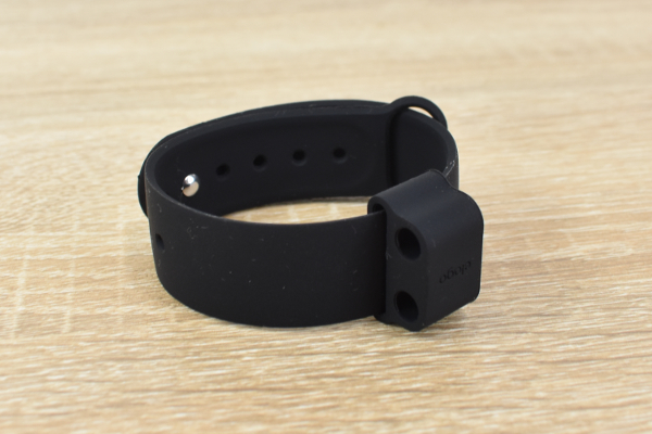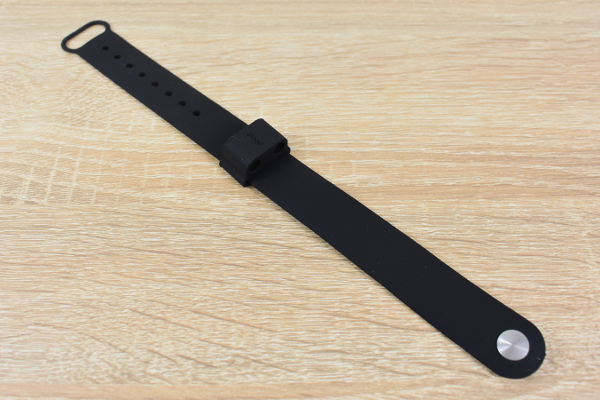 バンドのサイズは、25.5(幅)×250mm(長さ)ほど。厚さ15mmのホルダーに空いた2か所の穴にイヤホンを差して使います。バンドもホルダーもシリコン製なので、手触りはとてもなめらか。しっかりと手首にフィットし、イヤホンが滑り落ちたりバンドがずれて作業の邪魔になる心配はありません。