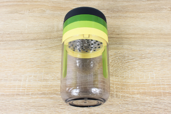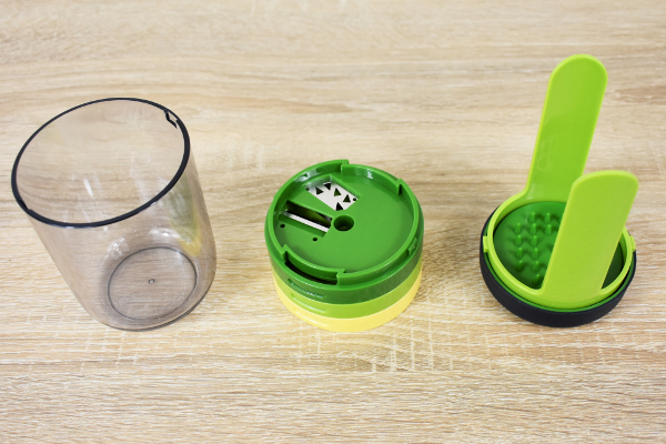 まずはフタとブレードを外し、使いたいブレードをセット。野菜はあらかじめフタとブレードの間に収まる大きさに切っておくといいでしょう。