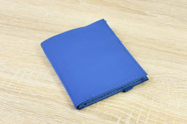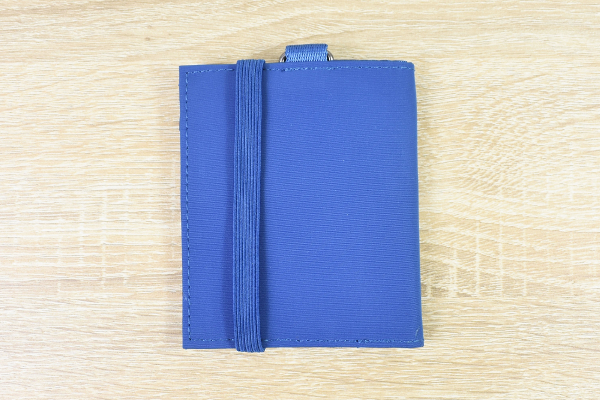 同商品は約11.0(幅)×9.5cm(高さ)の折りたたみ式財布。本体をゴム製のベルトで固定できる他、キーチェーンをセットするためのホルダーがついています。最大の特徴はなんといってもボディの薄さ。折りたたんだ状態でもおよそ1.5cmほどの厚さしかないため、パンツのポケットやカバンの隙間などにスッポリと収納できますよ。