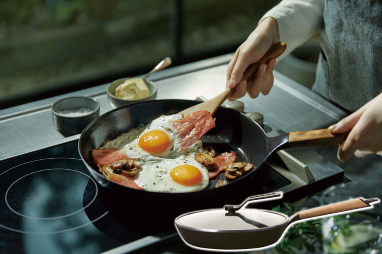 鋳物ホーロー鍋でおなじみのブランドからフライパンが登場。食材から出る余分な水分を瞬間蒸発させ、凝縮されたうま味を食材に閉じ込める。従来の鋳物ホーロー製フライパンの約半分の薄さと軽さで扱いやすい。