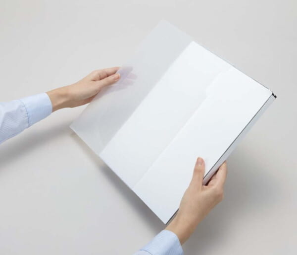 広げて立てるだけでパーテーションになり、集中できる作業ブースを作れる。内側には付箋やメモを貼れるスペースや、小物ポケット、書類を掲示できるスリーブなども完備。