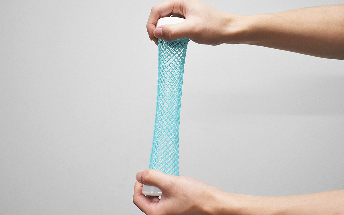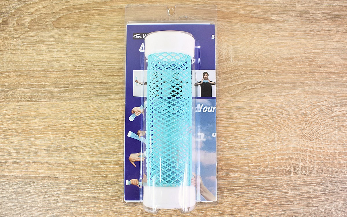 本体を軽く握ってみたところ、網目状の部分が“ムニュッ”と細長い形状に変化。力を抜くと元通りのサイズに戻っていきます。僅かな力で筒が変形するのですが、何度も続けるのは意外とハード。1~2分ほど継続しただけでも、手の筋肉を十分に鍛えることができました。