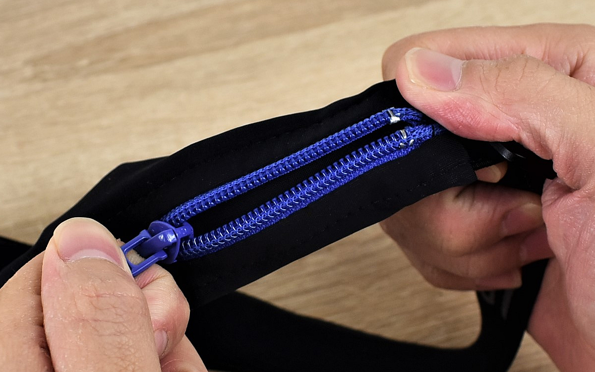 ウエストの長さは約63~102cmまで対応。ベルトがゴムのように伸び縮みするので、ポーチを少しきつめに巻いても窮屈さはあまり感じませんでした。ポケット部分が体に密着して固定されているため、中のアイテムがほとんど揺れないのもありがたいですね。