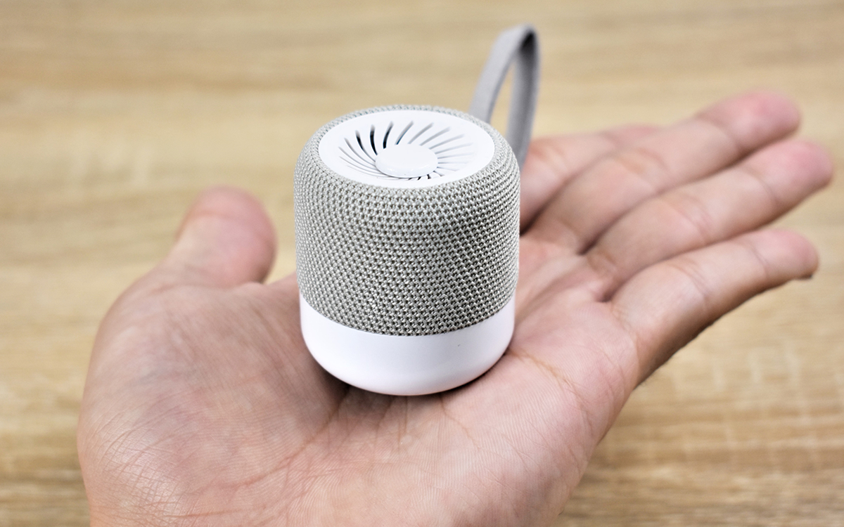 同商品はBluetooth接続に対応したワイヤレスタイプのスピーカー。本体の大きさは約40(幅)×40(奥行)×43mm(高さ)ほどで、卵とほとんど同じくらいのサイズ感です。インテリアとも調和しやすいシンプルなデザインのため、場所を選ばずにセットできるのがポイント。ストラップを利用してカバンに吊るせば、ハイキングやキャンプなどでも気軽に音楽を聴くことができますよ。