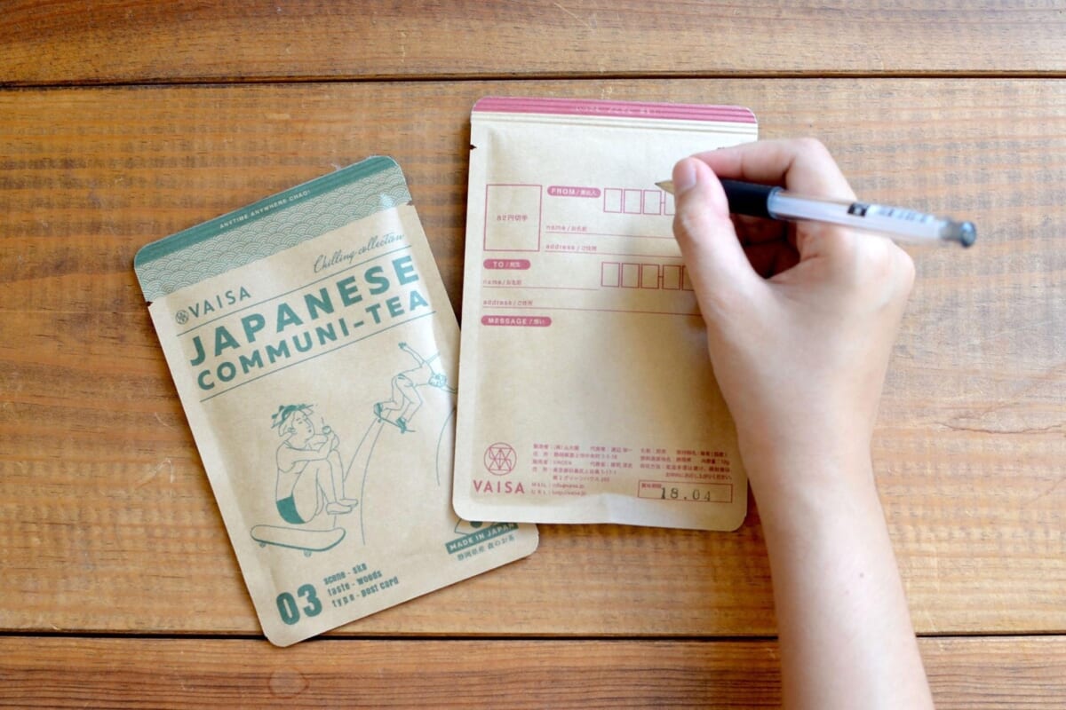 「価値ある時間を大切に」をコンセプトに、パッケージ自体がハガキになったお茶。宛名を書いてそのままポストに投函できます。