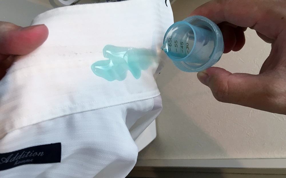 まずは衣服の洗濯表示をチェック。水洗い可能かどうかを確かめます。洗えるようなら、全体をさっと確認して食べこぼしのシミやえりそでの黄ばみなどがないか確認しましょう。部分的な汚れがある場合は、液体洗剤を汚れに直接塗布する“直塗り”をしておくと、汚れが落ちやすくなりますよ。