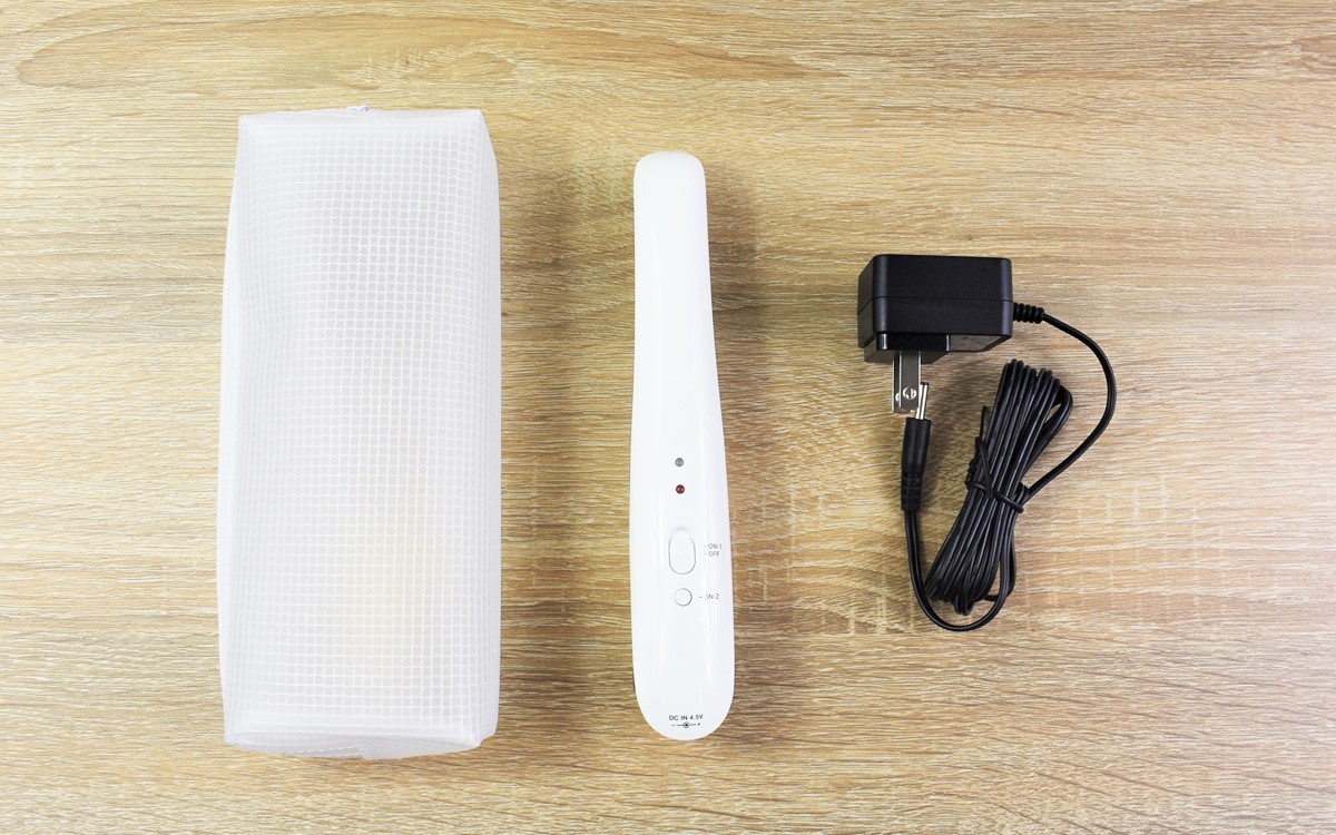 ヘアアイロン、ポーチ、ACアダプターがセットになった同商品。ヘアアイロンの大きさは約18.3(幅)×3.1(奥行き)×3.9cm(高さ)とかなり小さく、カバンの収納スペースを圧迫することなく持ち運べます。充電式のヘアアイロンなので、どこでも“サッ”と利用できるのが最大のポイント。外出先のトイレなどでも気軽に髪型を直せるのがありがたいですね。