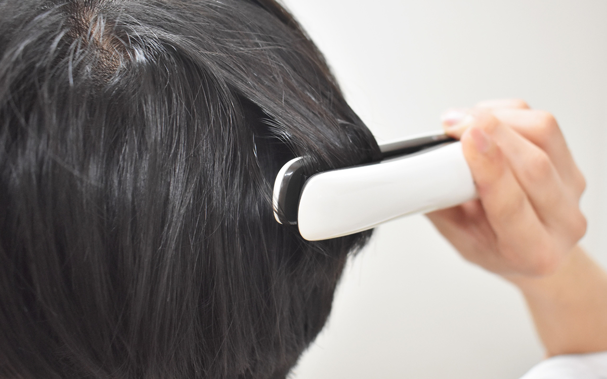それではさっそくヘアアイロンを使ってみましょう。家庭用のヘアアイロンと比べ熱を発するプレートが若干狭く感じましたが、前髪や乱れたくせ毛を直すには十分なサイズ感です。もちろんアイロンの熱量も申し分ナシ。寝ぐせや湿気による髪の乱れも、あっという間に整えられますよ。