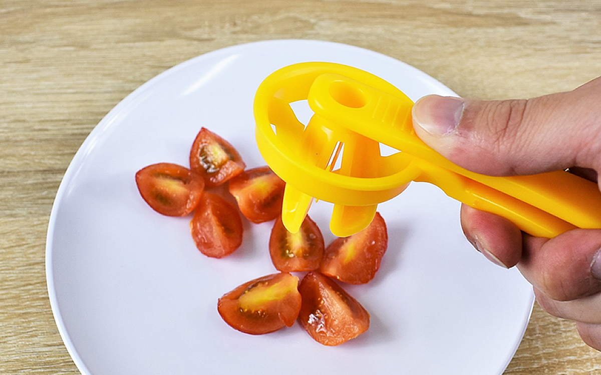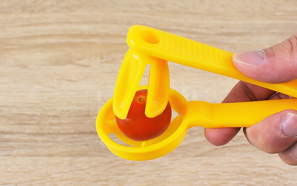 包丁を使わずにカットができる「ミニトマトカッター」。ぶどうやマッシュルームなどにも使えるため、小さな食材のカットが苦手な人は役立ててみてはいかがでしょうか?