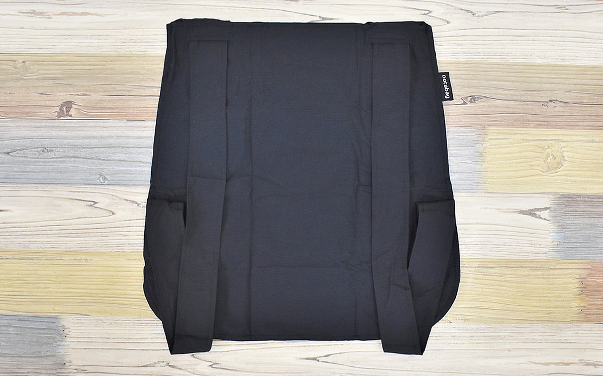 さっそく広げてみたところ、持ち手を含めて45(幅)×65cm(高さ)ほどの大きさに。布地はコットンとナイロンを使用した手触りのいいもので、汚れても気軽に洗えるウォッシャブル仕様です。