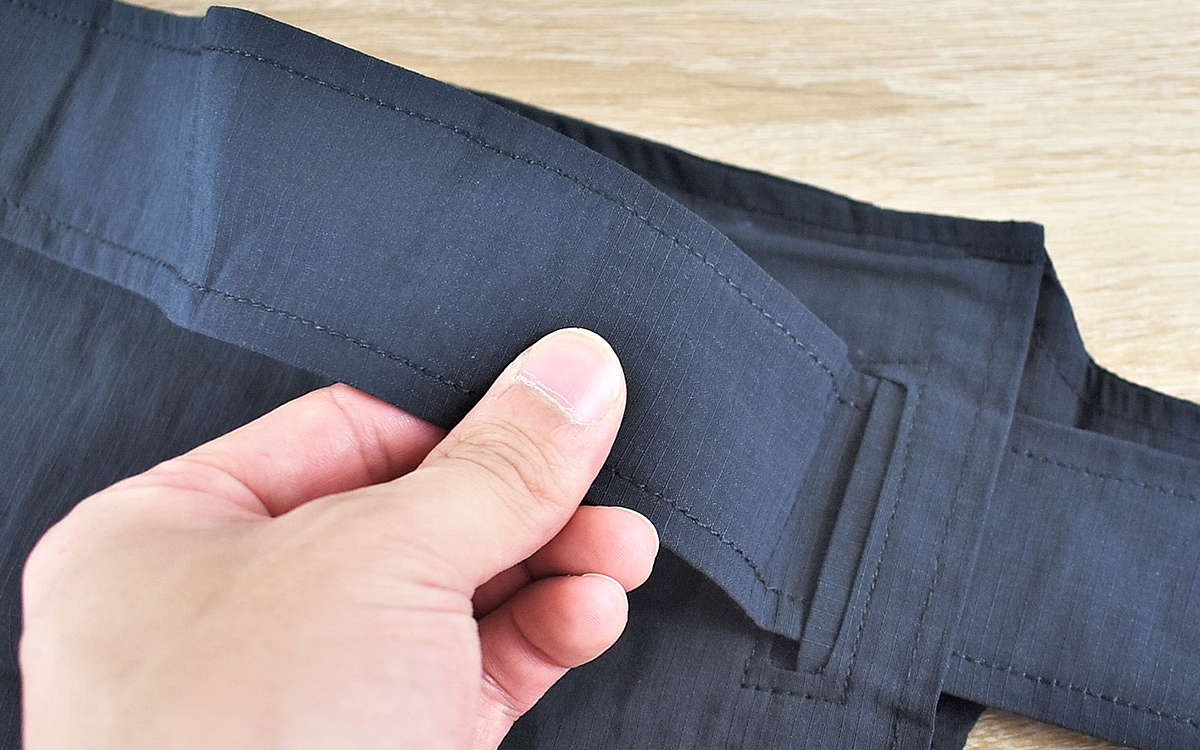 サイドについた持ち手は、バッグ背面の穴を通って底の部分とつながっている特殊なデザイン。背面から引き出すことで、リュックのように背負える形になります。背負った時に口が絞られるため、荷物をたくさん詰めて背負ってもこぼれません。
