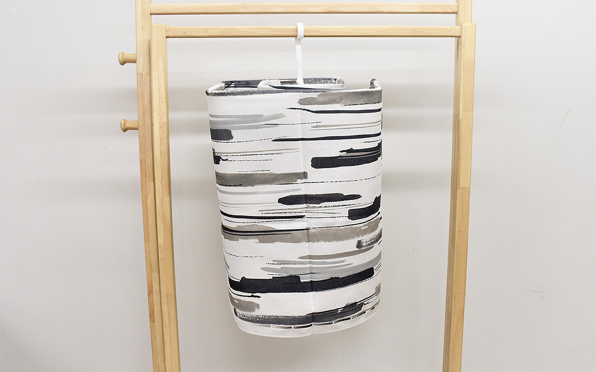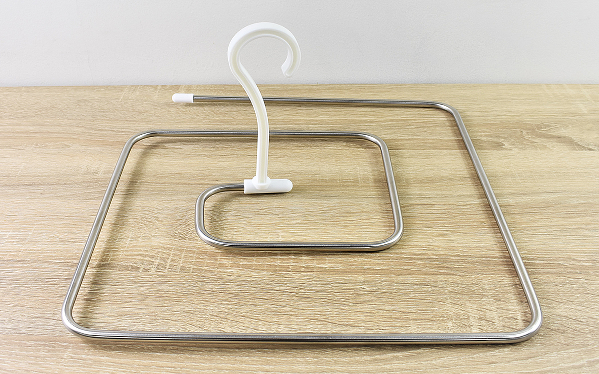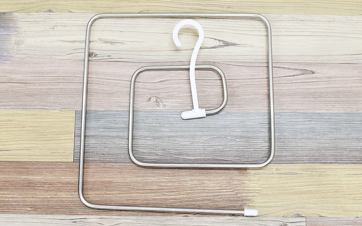 ハンガーの大きさは、33.5(縦)×35cm(横)ほど。大きな布を中心から巻きつけるようにセットするだけで、風通しのいい状態で干すことができます。