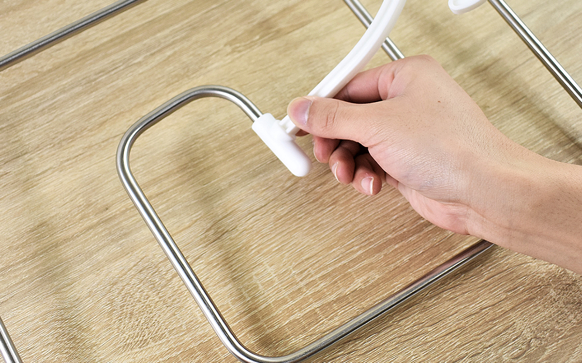 使わない時はフック部分を折りたためば、隙間に納まるほどの薄さに。これならクローゼットのデッドスペースや棚の隙間など、どこにでもしまっておけますね。