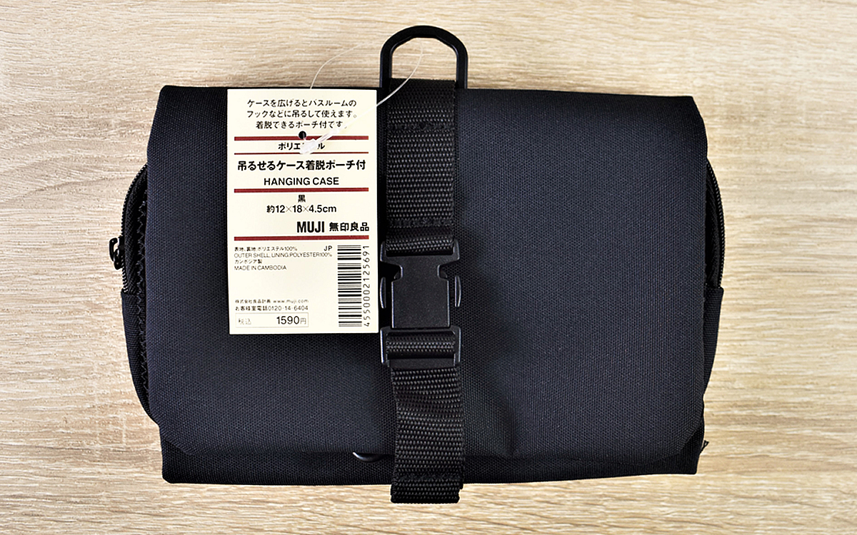●家の中でも外出先でも使える「ポリエステル吊るせるケース着脱ポーチ付」(無印良品)