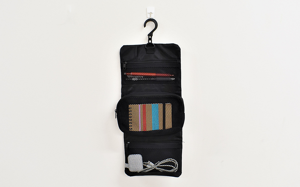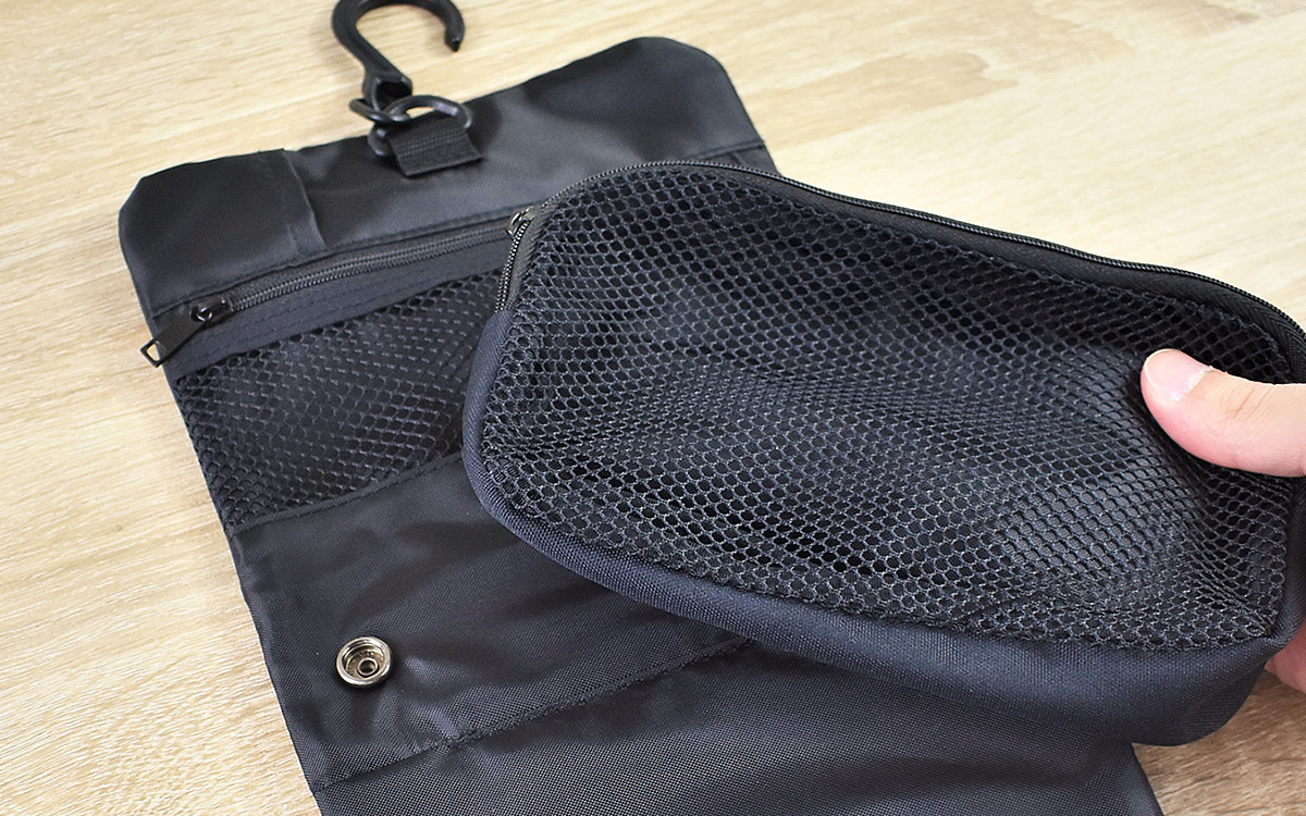 画期的なポイントは、壁に吊るせるところだけではありません。中央のポーチは取り外しができるため、“ポーチ”だけでも使用することが可能。歯ブラシや洗顔料を入れておけば、散らかりがちな“スキンケアグッズ”をまとめて持ち運べます。