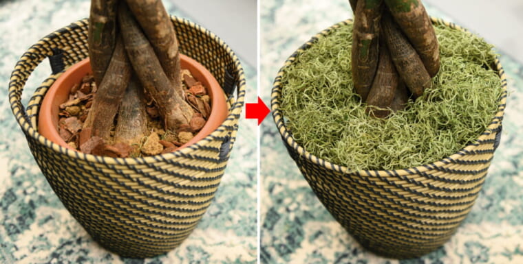 「鉢よりも高さのあるカバーを選ぶのがポイント。植物の根本をフラワーショップなどで売っているマルチング材で隠すとより見栄えします」(遠藤さん)