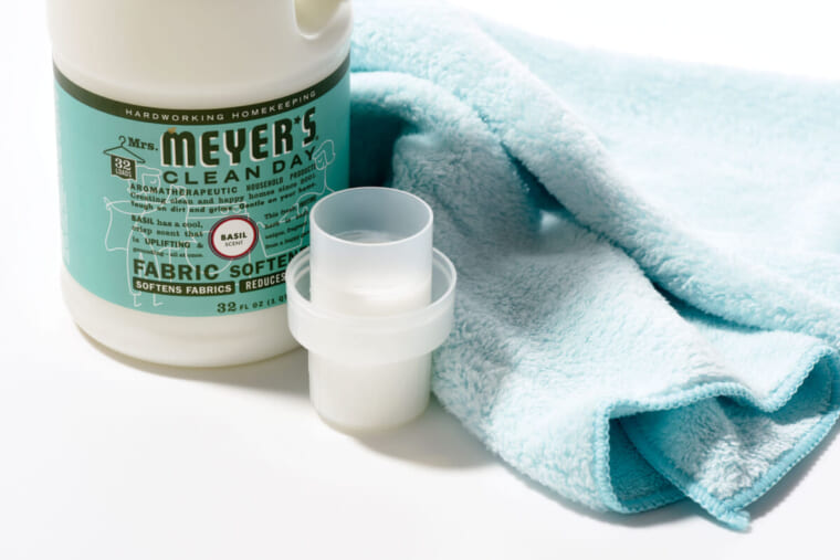 天然エッセンシャルオイルを配合した柔軟剤。ほんのりスパイシーな、アロマ系の香りが衣類を包む。容量946ml(約32回分)。バジルのほか、ゼラニウム、ラベンダー、レモンバーベナの香りが揃う。