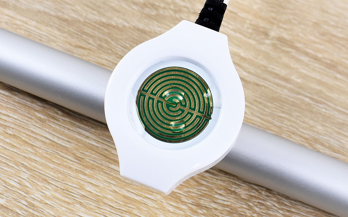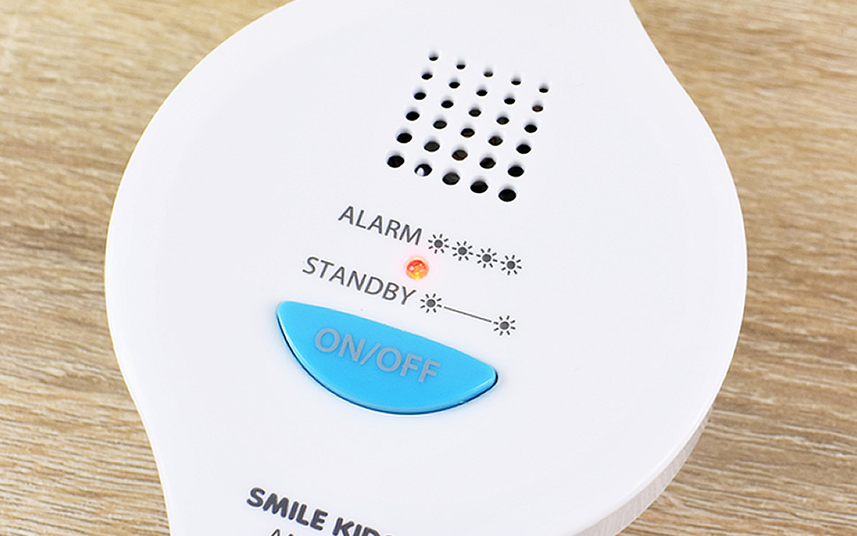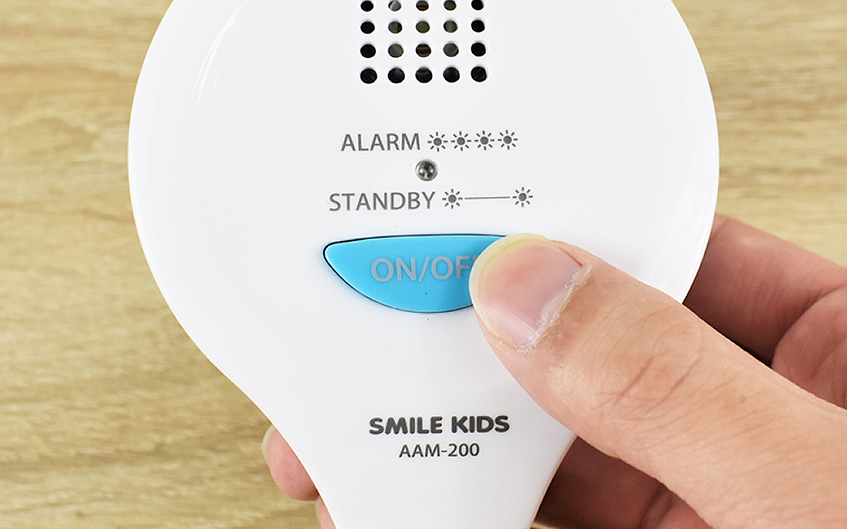 本体の青いボタンを押すと、電源が入って赤いライトが2回点滅。「検知スタンバイモード」になり、センサーが作動しました。