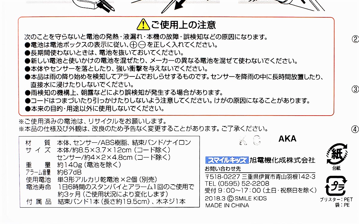 ●降り出した雨を音で教えてれる「雨ふりセンサーⅡ」(旭電機化成)