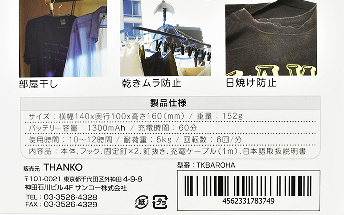 ●乾燥時間をグッと縮める「充電式360度回転ハンガー『部屋干しくるくるカラりん』」(サンコー)