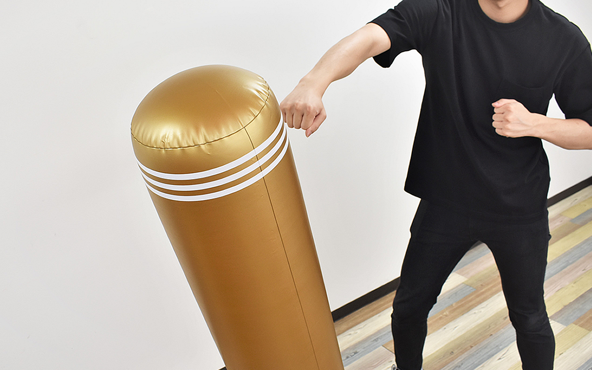 思う存分身体を動かせる「ストレス解消パンチバッグ ゴールド」。外に出て運動するのが億劫な方は、同商品で室内トレーニングに励んでみてはいかがでしょうか?