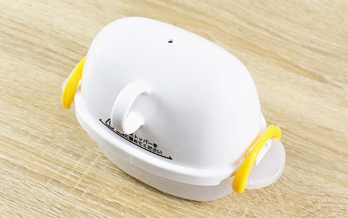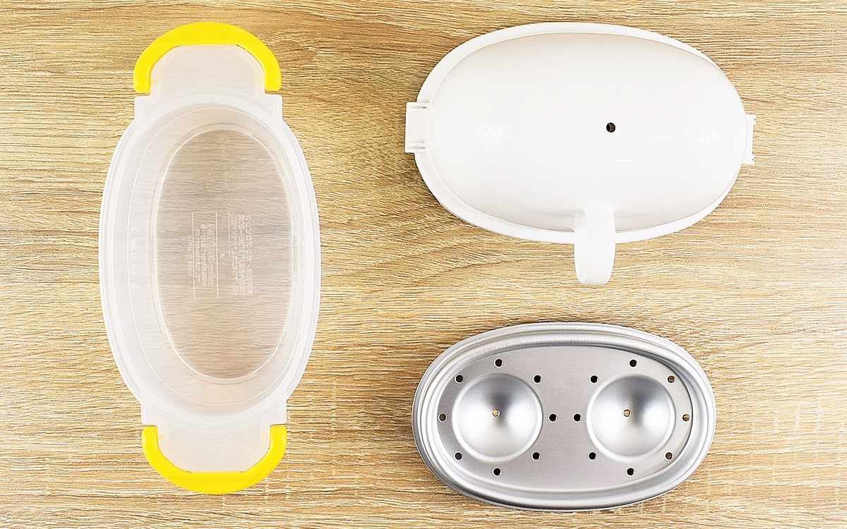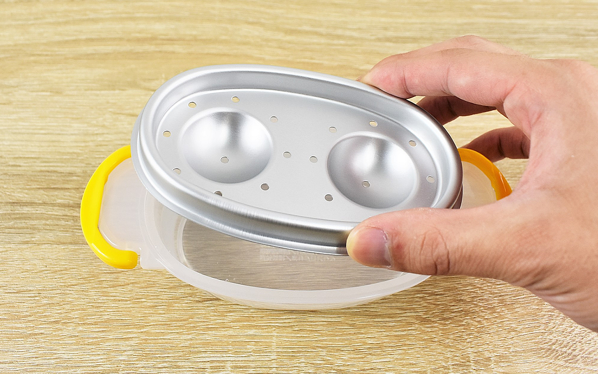 まずは容器の下部分に水を注ぎ、上に生卵をセット。フタをしてストッパーを閉めたら、500~600Wの電子レンジで10~11分加熱すればゆでたまごの完成です。基準の時間から30~60秒ほど延長・短縮することで、固ゆでや半熟に仕上げることもできますよ。