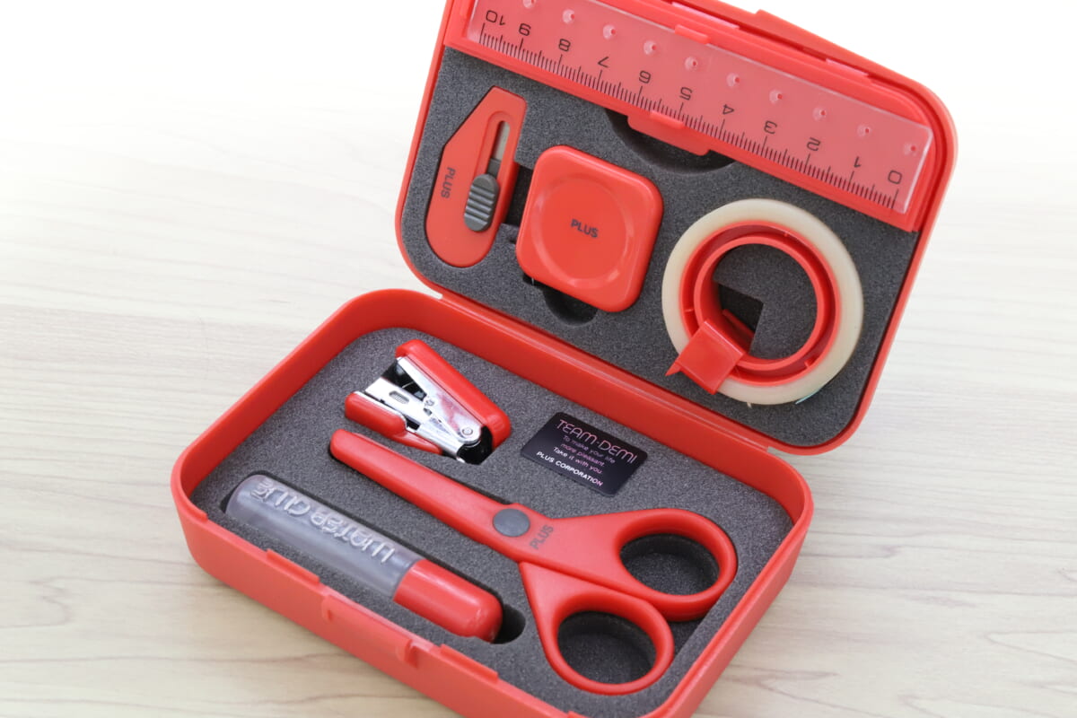 1984年、文房具業界にひとつのレジェンドが誕生した。それがプラスの「チームデミ」だ。コンパクトなツールを、みっしりと密度高くケースに詰め込んだ文房具セットで、だいたい40代以上の人なら、名前は知らなくても、見れば「あー、あったあった」と思うんじゃないだろうか。