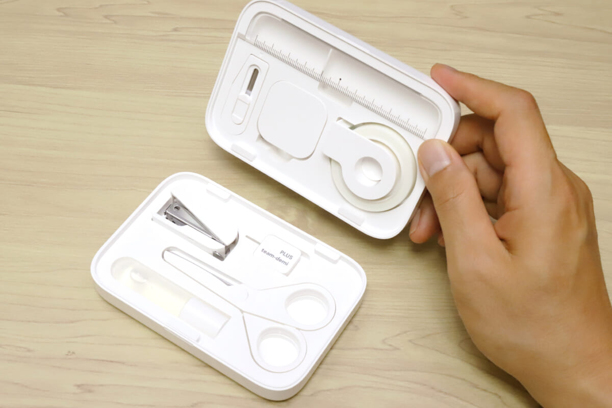 うん、見た目はとてもいい。チームデミのチームデミらしさとは、文房具の小ささに加えて、それぞれの形状にカットされたウレタンにピタッと収まる、あの収納の“専用感”も重要だと思う。