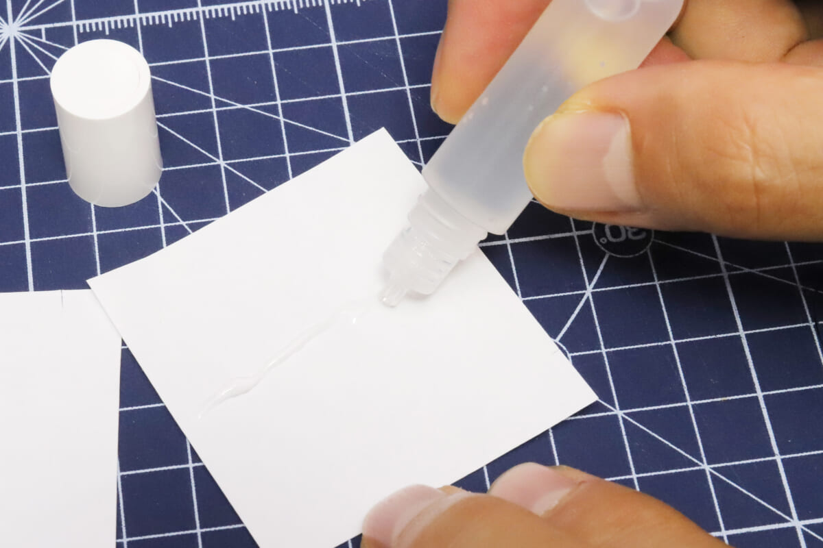 もうひとつの貼りモノである液体のりは、紙がシワになりにくいタイプ。ノズルもピンポイントに出せる細口ノズルなので、資料のちょい貼りや紙工作にも使いやすいだろう。また、フタには収納用のマグネットが入っているので、散らばったゼムクリップを拾い集めたりするのにも活用できる。