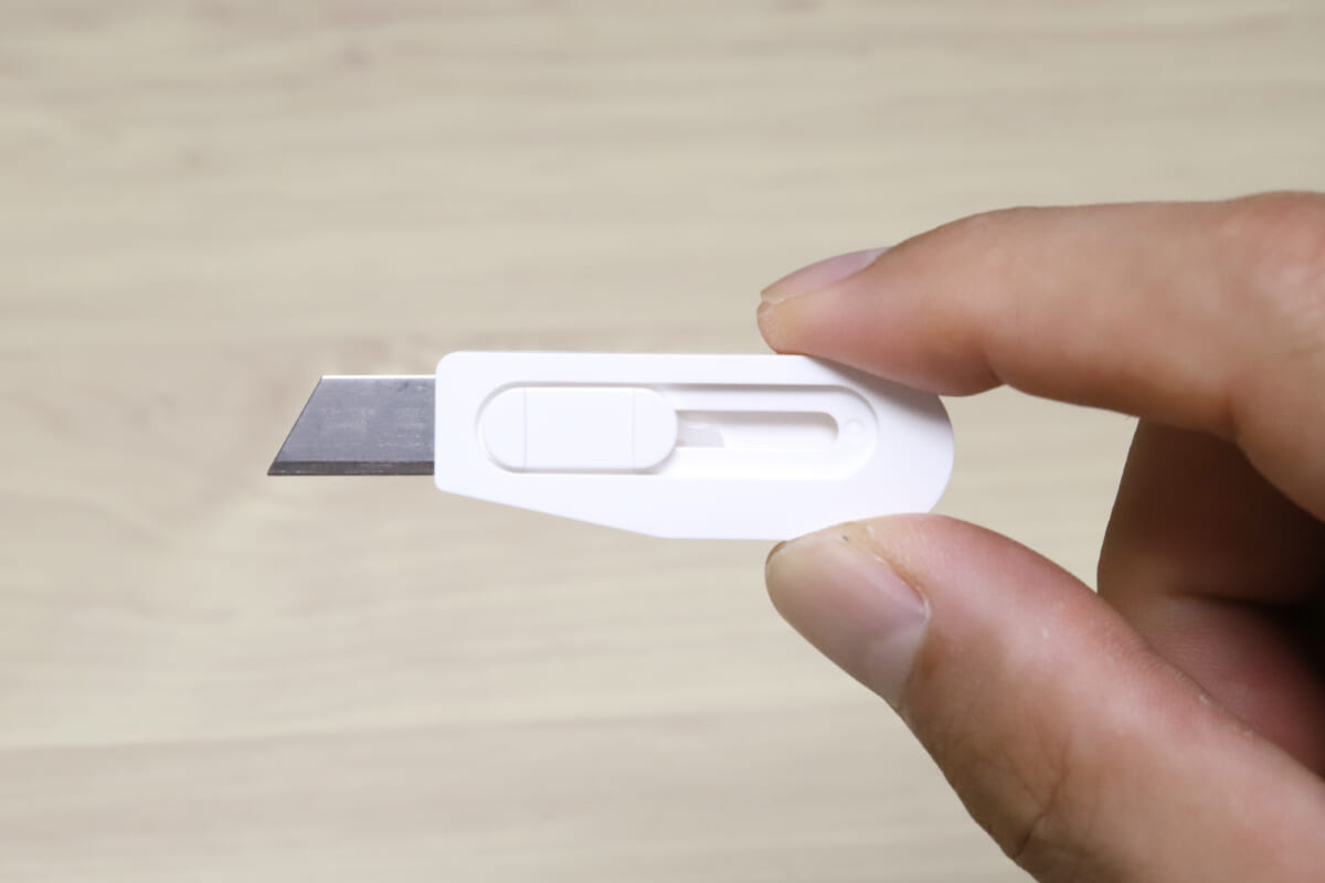 カッターナイフは、プラスが「オランテ」で開発したのと同タイプの、折らないカッター刃を採用。L刃と同じ厚み(0.5mm厚)の頑丈な刃なので、コンパクトなボディでも意外とブレずに安定したカットができるのがポイントだ。