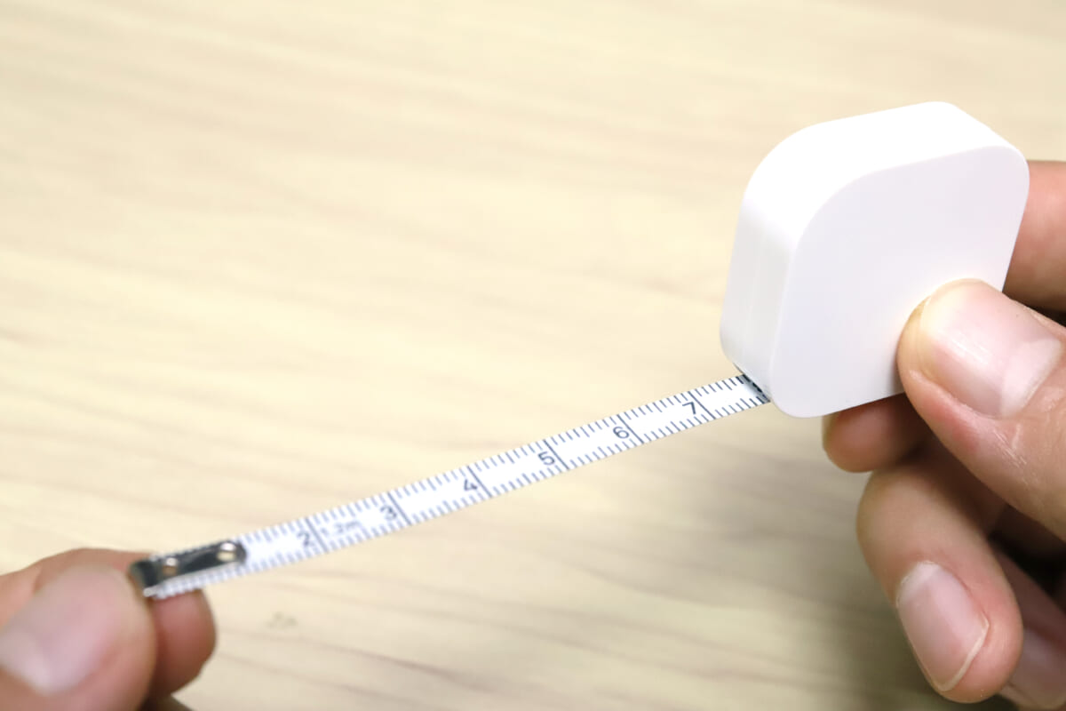 メジャーは1.2mの長さを測れるタイプ。旧版が1mタイプだったので、少し延長されたことになる。1mを測る際、ちょっと余裕があったほうが使いやすいので、これもありがたい。
