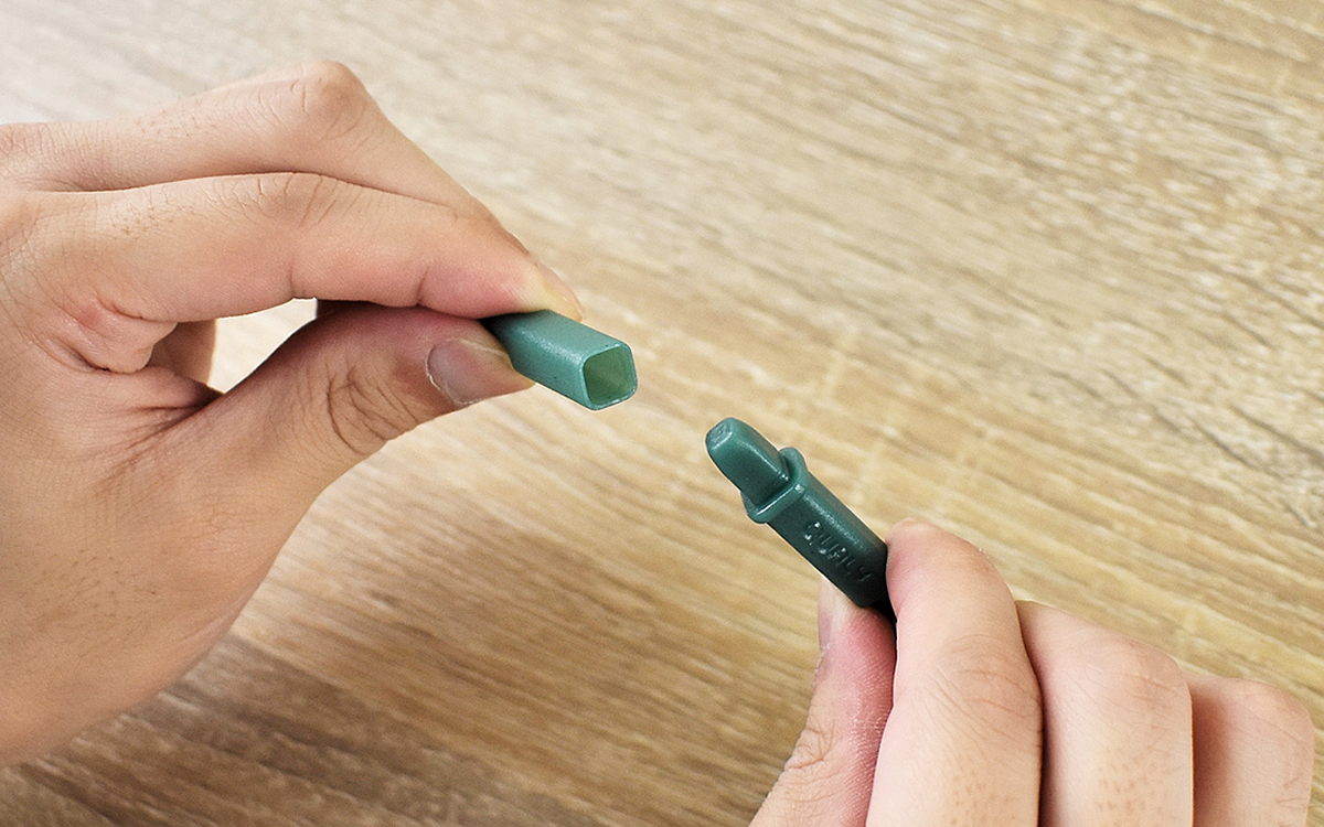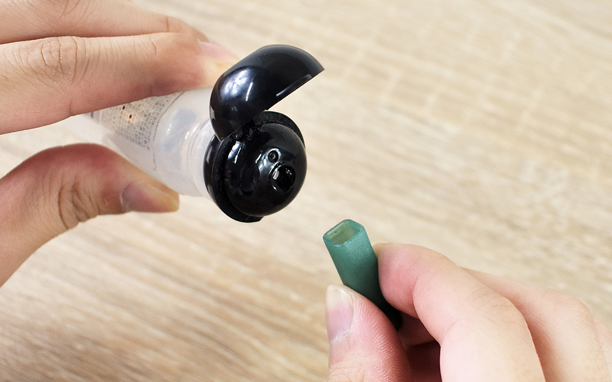 キャップに消毒液やアルコールジェルを注いで先端に被せるだけで、直接触れずに滅菌が可能。耐熱温度も120度となっているため、熱湯に入れて殺菌することもできました。