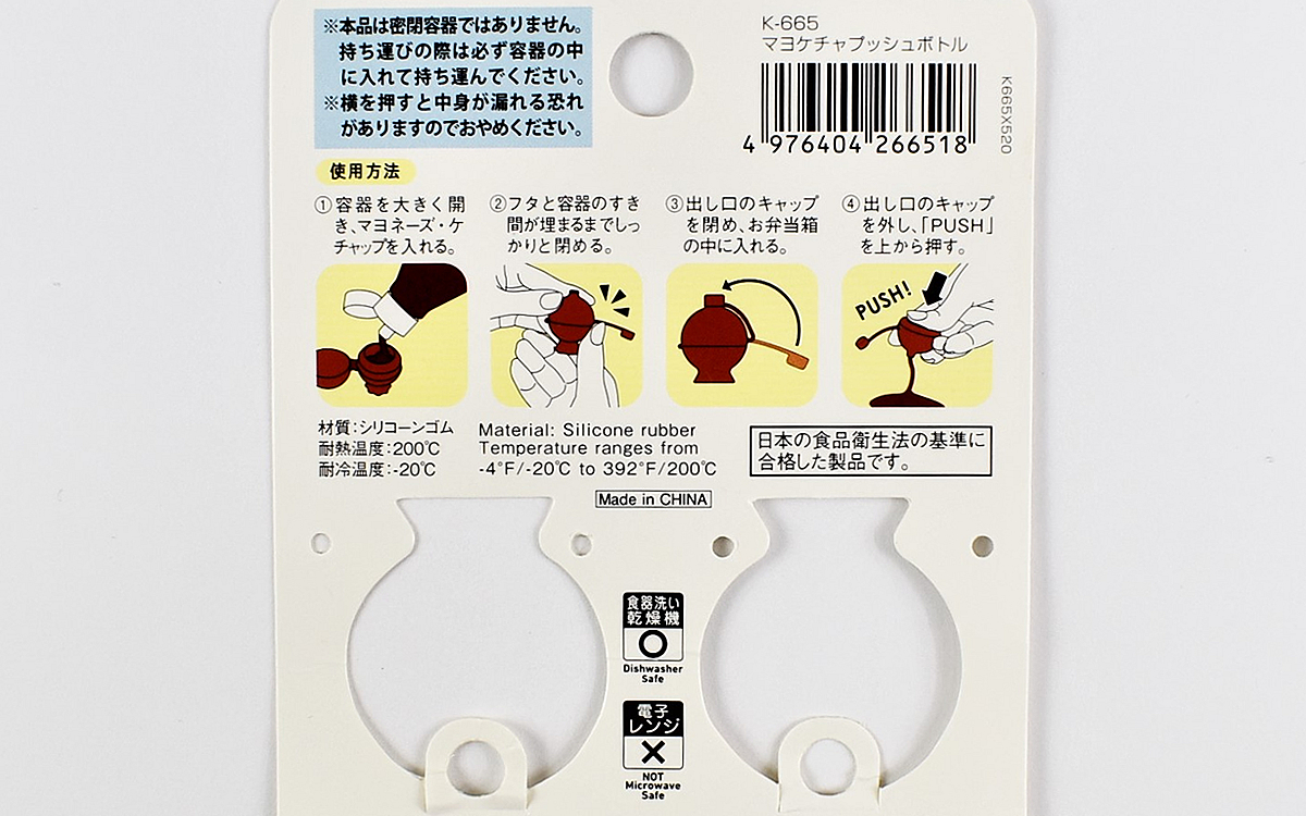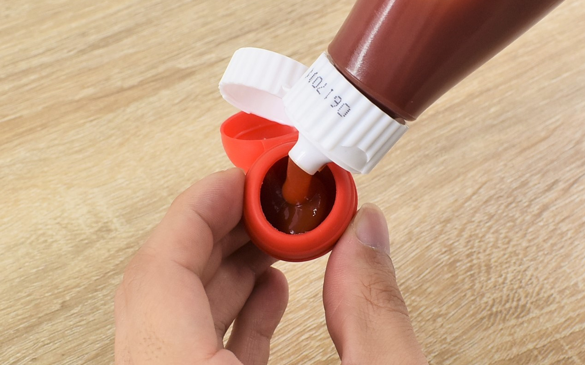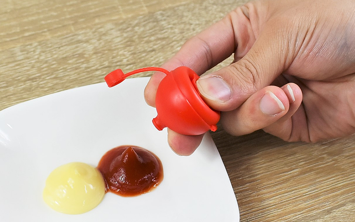 お弁当のおかずを選ぶ際に、液漏れしにくい料理やタレがほかの食材につかないおかずを選ぶようにしている私。しかしその条件があるせいで、おかずのレパートリーが限られてしまいます。調味料を別に持っていくプラスチック製の容器を使ったこともありますが、ケチャップやマヨネーズのようなとろみのある調味料だと容器に入れる時が少し大変。東急ハンズで販売されている「マヨケチャプッシュボトル」(528円/税込)は、ケチャップとマヨネーズ専用の調味料ボトルです。