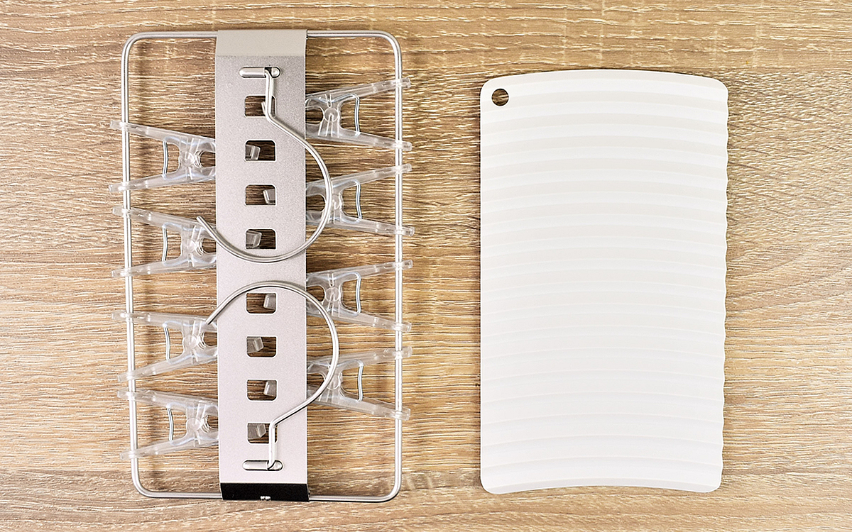ポリエチレン製の洗濯板は、表面に細かな溝がたくさん。試しにハンドタオルを洗ってみると、溝によってしっかり汚れを落とすことができました。緊急で汚れを落としたい時には十分な性能です。