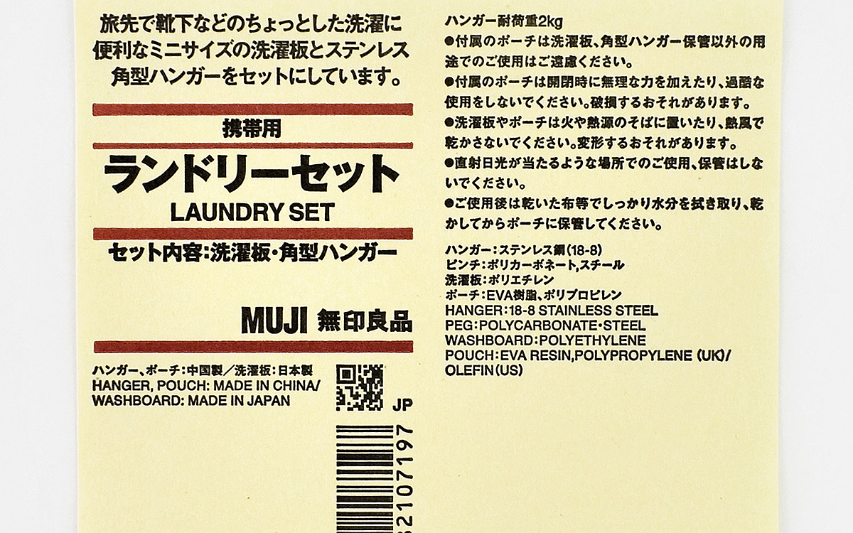 生活用品を多く扱う無印良品では、コンパクトに持ち運べる「携帯用ランドリーセット 洗濯板・ミニ角型ハンガー」を販売中。同商品は今年9月に放送された「バゲット」でも「無印良品便利グッズTOP5」に入り、災害時に役立つと注目を浴びることに。ネット上でも「薄いポーチに洗濯用品がまとまっていて便利!」「軽いから旅行用のキャリーバッグに入れても運ぶのが楽です」と反響が寄せられています。果たしてどれほど高性能なのか、さっそくレビューしていきましょう。