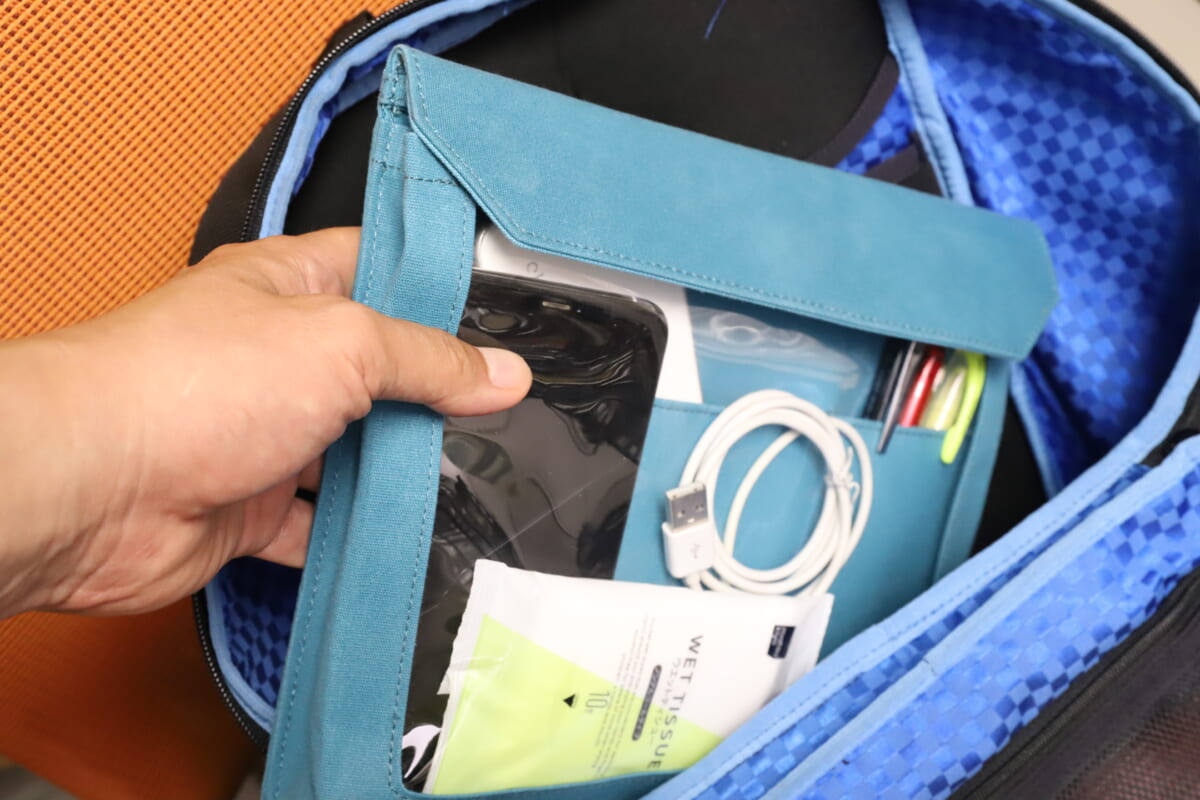カバンの収納で困りがちなのが、手帳やモバイルバッテリーなど、さほど厚みのないもの。多少ごちゃついたカバンの中にもスルッと入ってしまうが、取り出す時は探さないとなかなか出てこない。