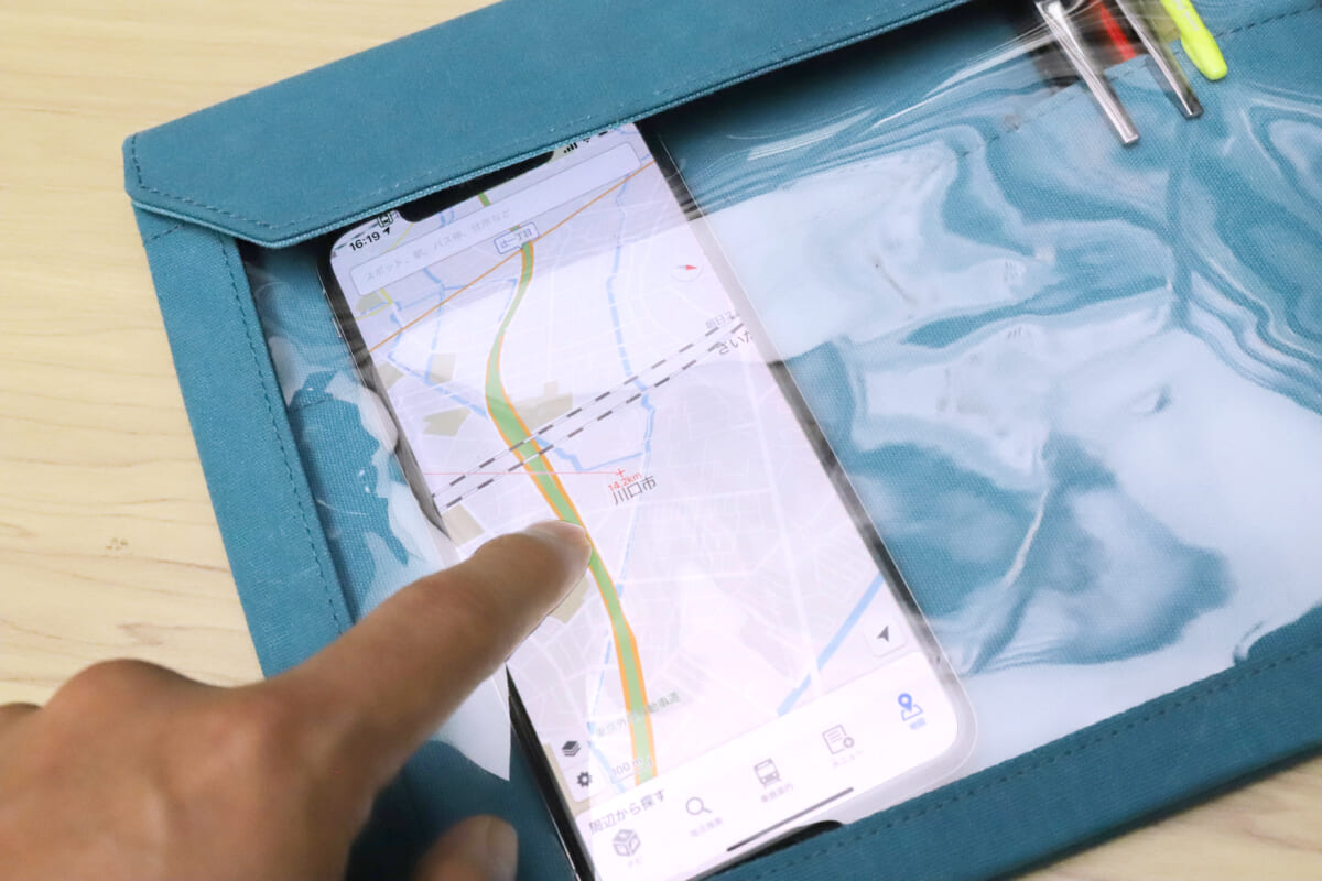 さらには、収納したスマホを透明ポケットの上から操作できる(多少、操作性は落ちるが)というのも、けっこう便利。メールやLINEくらいなら取り出さずに対応可能で、これは使ってみるとなかなか快適である。