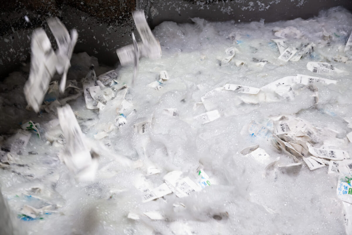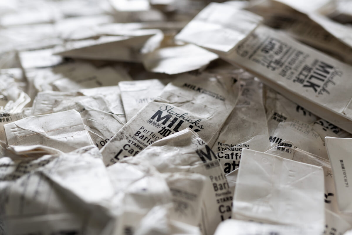 ミルクパックが表紙の紙に生まれ変わる工程を見てみましょう。