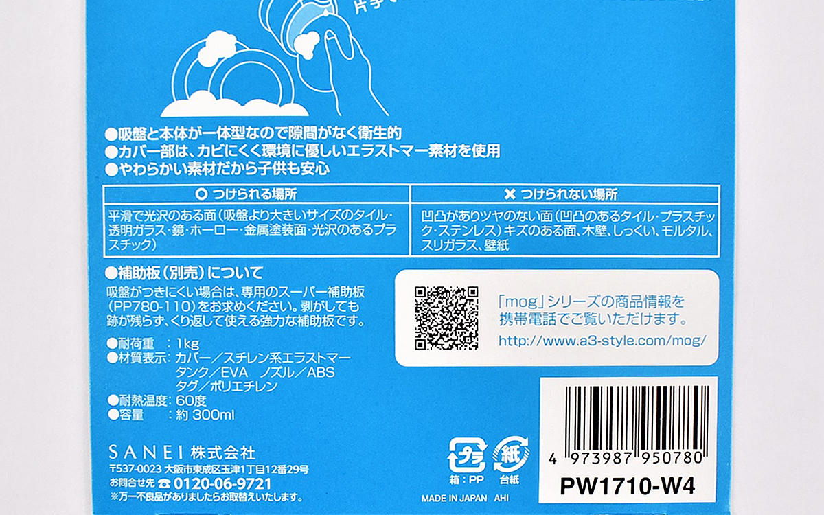 ●自由な位置にセットできる「ウォールソープディスペンサー」(SANEI)
