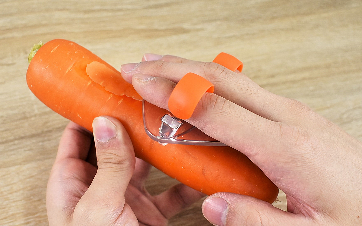 このピーラーを使って、今回は皮と実の境目が判別しにくいニンジンの皮むきに挑戦。手のひらでニンジンを覆うように刃を当て、そのまま表面をなでるだけで簡単に皮がむけました。