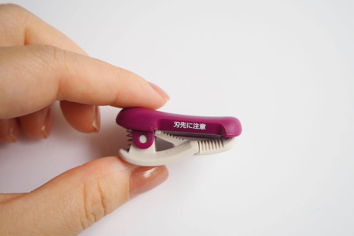 文具メーカーのコクヨから、マスキングテープを切るための「テープカッター カルカット(クリップタイプ)」(以降、カルカットクリップ)が発売されています。マスキングテープ本体に挟んで装着し使うタイプのカッターで、これなら簡単に切ることができますし、小さいので持ち運びも問題ありません。ハサミで切るよりずっと楽です。