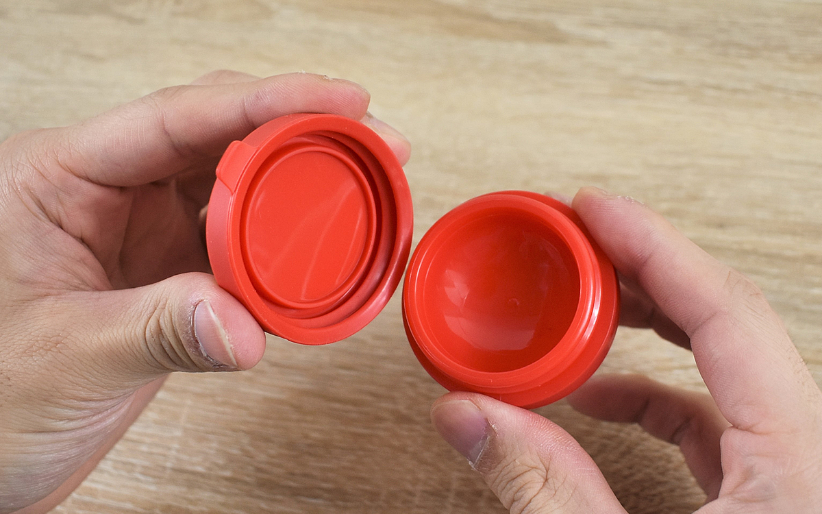 フタの部分は“つまみ”がついており、引っ張ると開閉できる仕組み。シリコーンで作られているため、調味料の液漏れを防いでくれます。