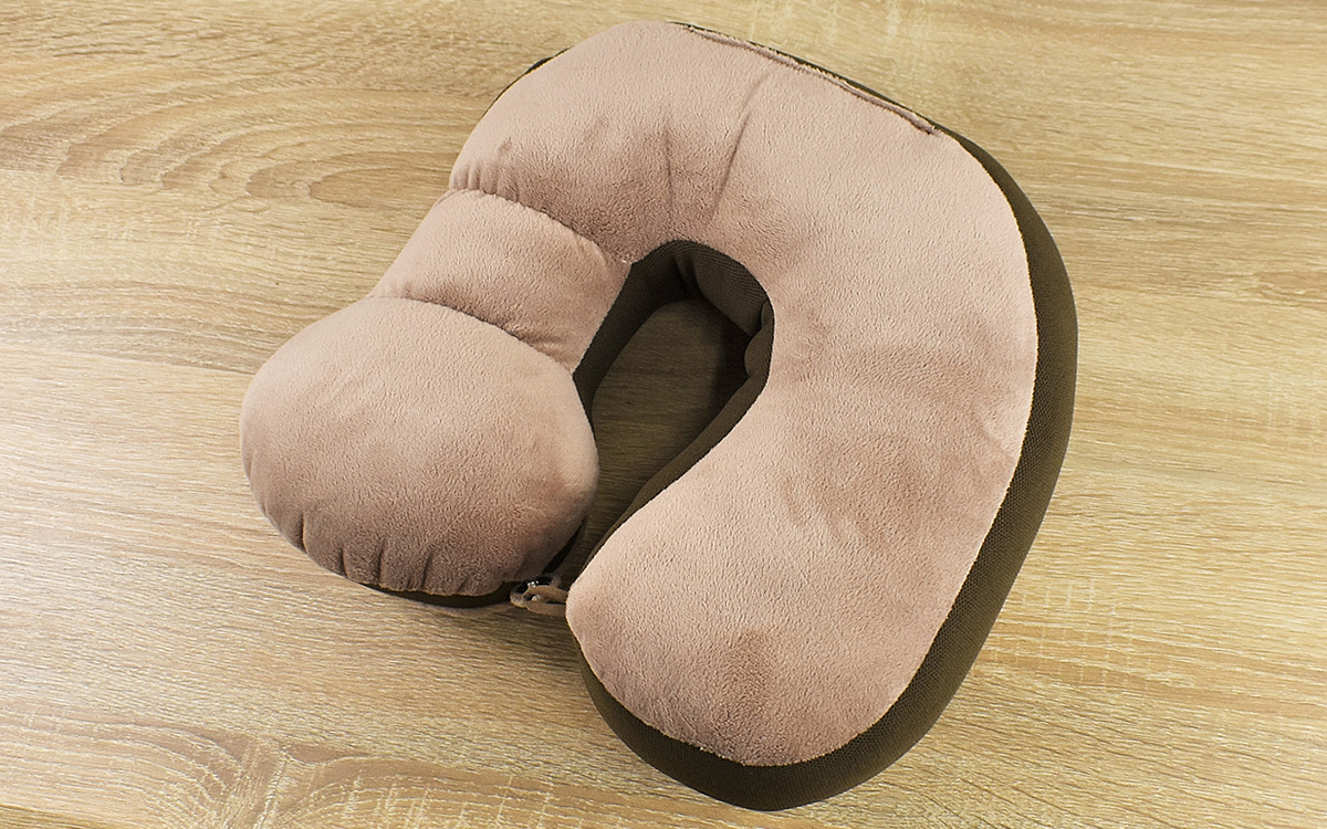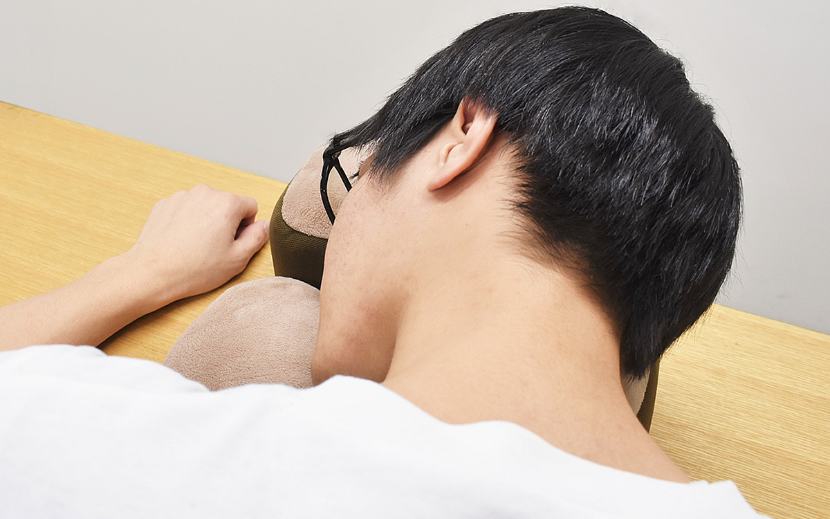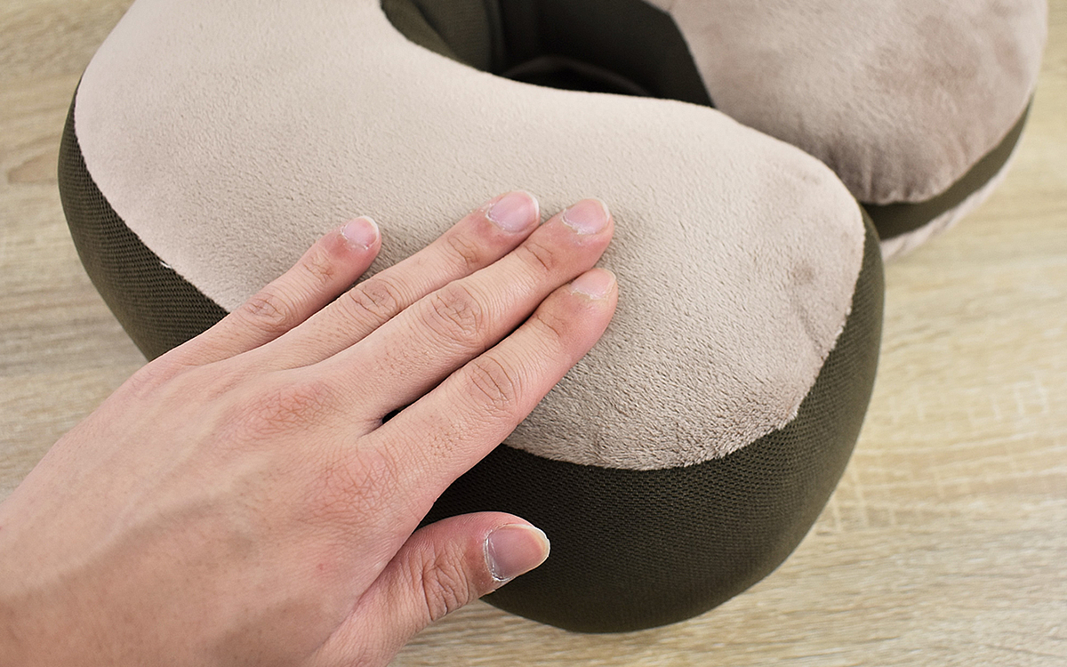 さっそく頭を預けてみると、中央の穴は耳がすっぽり収まる大きさ。これなら音を遮断しないので、テレビを見たい時に最適です。クッションが少し斜めになっているおかげで、首を楽な角度に保てるのもポイント。横向きでも仰向けでも頭をしっかり支えてくれました。
