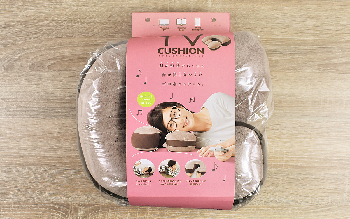 最近激務が続いているせいか、少し腰を痛めてしまった私。なるべく体に負担をかけないよう、休日は寝ころんだ姿勢で過ごすことにしています。しかしゴロゴロしながらテレビを見たり本を読んでいると、今度は首に負担がかかるように。体のためにも快適な姿勢を追求しようと考え、東急ハンズで「ホッとひと休みTVクッション」(1628円/税込)を購入してきました。