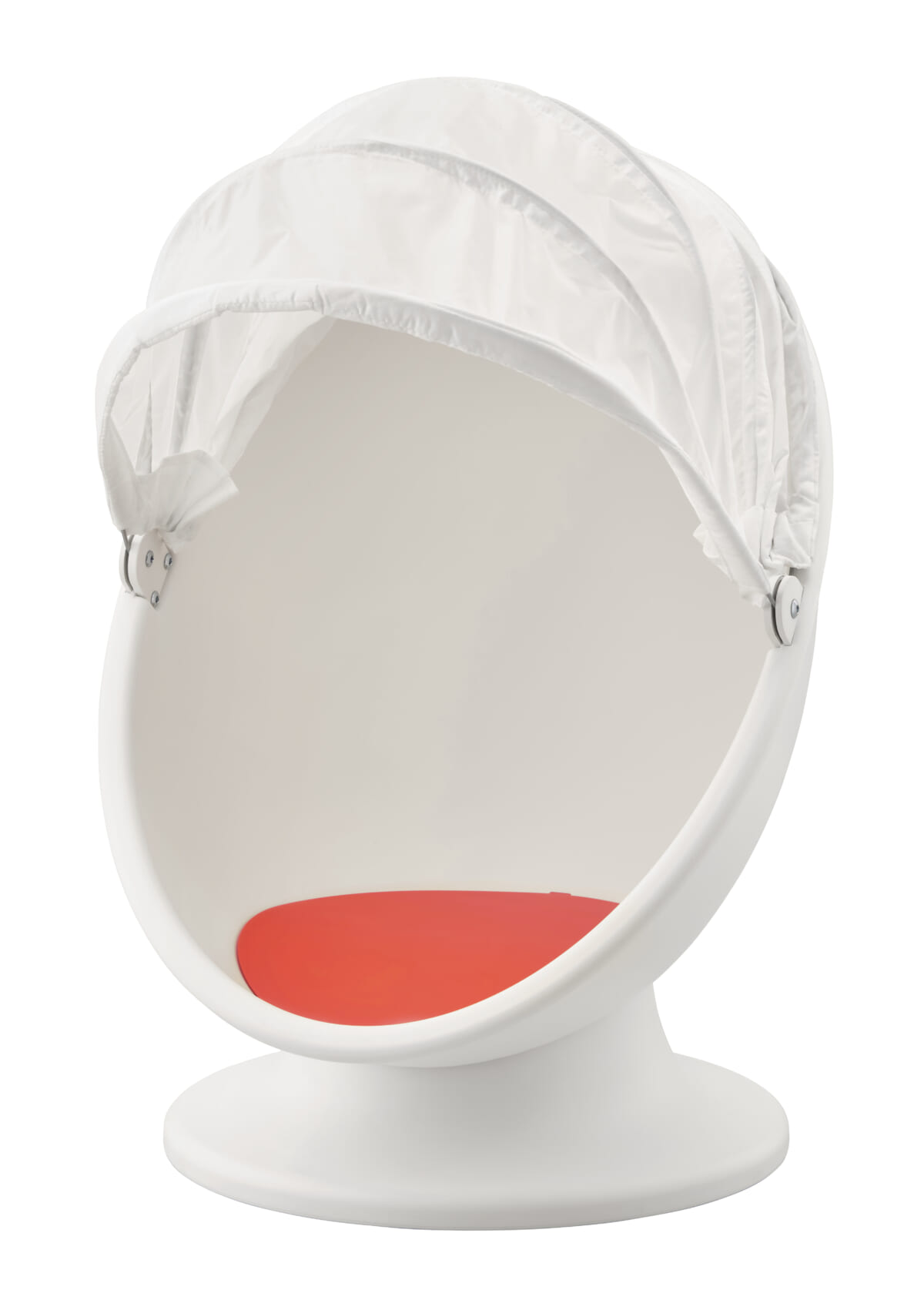 「テーマがファミリーなので、子どもにも喜んでもらえる模様替えを。大人もラウンジチェアなど特別な自分専用の椅子があると嬉しいですよね。それなら子どもは、なおさら喜ぶはず。秘密基地みたいに隠れられる遊び心がいいですね。座面はソファと共通したオレンジなので統一感が生まれます。たまごのようなフォルムが、柔らかさがあってインテリアに温かみを与えてくれます」(渡部)