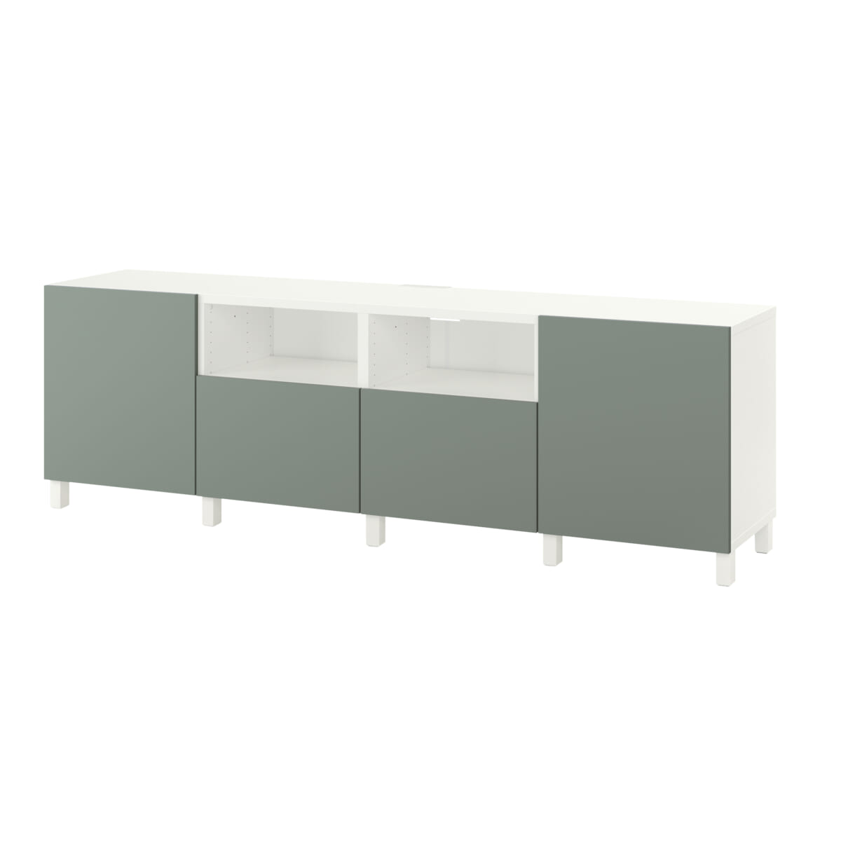 BESTÅ ベストー テレビ台 扉&引き出し付き, ホワイト/ノートヴィーケン/ストゥッバルプ グレーグリーン, 240×42×74cm