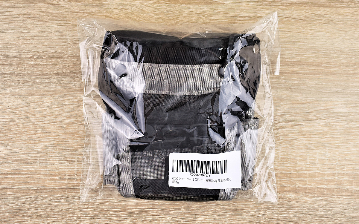 ポリエステル製の丈夫なポーチに、取っ手やクリップなどが付属している同商品。サイズは約150(縦)×130(横)×35mm(マチ)ほどで、ポケットの前面が中を確認できるメッシュ生地になっています。